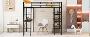 Twin Size Loft Bed With 3 Layers Of Shelves And Desk, Stylish Frame Bed - Black