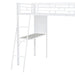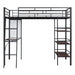 Crafted of metal in a clean painted finish, this metal loft bed strikes a clean-lined silhouette with slatted guardrails. The 3-layer open shelves offer ample space to display whatever you want. Equipped with a large desk and board underneath, this bed provides a comfortable place to work, read, and enjoy yourself. This loft bed will be a beautiful and practical piece in your bedroom.