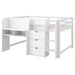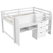 Full Size Low Loft Bed With Built In Desk, Storage Cabinets, Open Bookcase And Doodle Blackboard - White