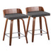 Maya - Mid-Century Modern Fixed Height Counter Stool With Swivel With Square Footrest (Set of 2) - Walnut / Charcoal