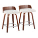 Maya - Mid-Century Modern Fixed Height Counter Stool With Swivel With Square Footrest (Set of 2) - Walnut / Cream