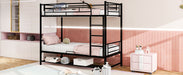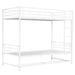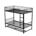 This metal bunk bed is made with sturdy metal and has a clean-cut silhouette that can be matched with any room decor. Designed with safety in mind, this bunk bed comes with a ladder integrated into the frame that is easy to climb up and down. With a practical design, this versatile bunk bed can be separated into two beds to meet your different needs.The shelf underneath the bunk bed creates extra space for you to stock shoes, boxes, toys or any small items you like. Some assembly is required, and the bed will definitely be assembled conveniently.