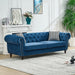 Mid Century Chesterfield Velvet Fabric Sofa With Roll Armrest & Nailhead, Blue, 87 Inches