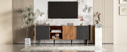 Mid Century TV Stand With 3 Cabinets, Media Console Table For Tvs Up To 70'', Entertainment Center With Storage For Living Room - Black / Brown