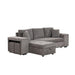 Modern L-Shape 3 Seat Reversible Sectional Couch, Pull Out Sleeper Sofa With Storage Chaise And 2 Stools For Living Room Furniture Set - Charcoal Gray
