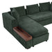 Elegant Chenille L Shaped Sofa With Wooden Storage Compartment - Green