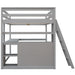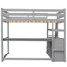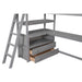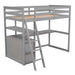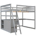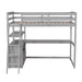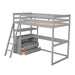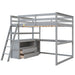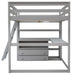 Full Size Loft Bed With Built In Desk, Shelves, And 2 Drawers - Gray