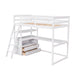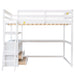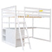 Full Size Loft Bed With Built In Desk, Shelves, And 2 Drawers - White