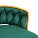 - Stylish and Comfortable Design: Golden metal frame with hand-woven backrest and velvet polyester seat for elegance and comfort.