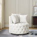 Modern Upholstered Swivel Chair With Button Tufted Design And Movable Wheels