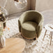 Add a pop of color and style with this upholstered barrel accent chair, crafted with soft polyester fabric and a sculpted oak wood base. The modern curved silhouette and open side-frame detail create a bold yet cozy seating option for living rooms, bedrooms, or reading nooks. This contemporary accent chair blends comfort, durability, and stylish design, perfect for modern furniture, living room seating, and home decor categories in online furniture stores.
