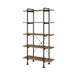 - Industrial and Rustic Design: This bookshelf combines industrial flair with rustic charm, featuring a beautiful rustic oak finish paired with a bold black metal base.