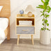 Nightstand With Collapsible Drawer, 2 Tier Storage End Table For Bedroom - Oak
