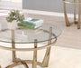 - Modern Elegance: This coffee table features a champagne and clear glass design, embodying modern elegance with its round leg design and minimalist aesthetic. Its sleek appearance complements any decor.