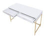 - Contemporary Design: The Ottey Writing Desk features a sleek and modern design with a high-gloss finish, complemented by a gold electroplated metal leg base for a luxurious touch.