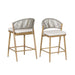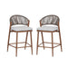 Outdoor Counter Height Aluminum Frame Counter Stools With Scallop Shaped Backrest & Water Resistant Cushions (Set of 2) - Teak