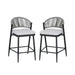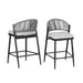 Outdoor Counter Height Metal Frame Counter Stools With Scallop Shaped Backrest & Water Resistant Cushions (Set of 2) - Matte Gray