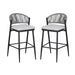 Outdoor Bar Height Metal Frame Counter Stools With Scallop Shaped Backrest & Water Resistant Cushions (Set of 2) - Matte Black
