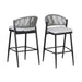 Outdoor Bar Height Metal Frame Counter Stools With Scallop Shaped Backrest & Water Resistant Cushions (Set of 2) - Matte Gray