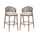 Outdoor Bar Height Aluminum Frame Counter Stools With Scallop Shaped Backrest & Water Resistant Cushions (Set of 2) - Teak