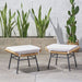 Outdoor Modern Boho Wicker Ottoman With Cushions (Set of 2) - Beige / Brown