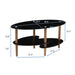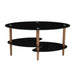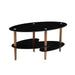 Oval Glass Coffee Table, Modern Table In Living Room Oak Wood Leg Tea Table 3-Layer Tempered Glass Table - Brown / Black