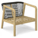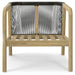 - Features a unique design, the solid acacia frame on the seat back is hand wrapped with highly durable woven grey rope cording