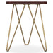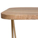 - Features unique shaped solid wood top and gold metal hairpin legs