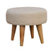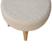 - Cream Boucle Petite Footstool - Derived from the French word for 'curled' or 'ringed' yarn or fabric. This handwoven upholstered furniture piece is made of 100% cotton and natural yarn. This petite footstool combines nordic style legs which are constructed from 100% solid mango wood and a soft cushioned top. The perfect accent piece to add to any room in the house.