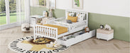 Full Size Platform Bed With Guardrails On Both Sides And 2 Storage Drawers - White