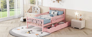 Full Size Platform Bed With Guardrails On Both Sides And 2 Storage Drawers - Pink