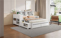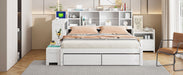 Full Size Platform Bed With Multi Functional Storage Space, Nightstand, 2 Drawers, USB Ports And Desk - White