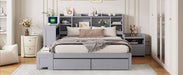 Full Size Platform Bed With Multi Functional Storage Space, Nightstand, 2 Drawers, USB Ports And Desk - Gray