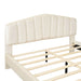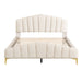 Queen Size Platform Bed With Thick, Stylish Stripe Decorated Bedboard And Elegant Leg - Beige