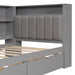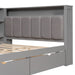 Twin Size Platform Bed With Upholstered Headboard, Storage Shelves, Drawers, Charging Station, LED Lighting, Built In Desk - Gray