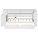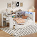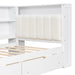 Twin Size Platform Bed With Upholstered Headboard, Storage Shelves, Drawers, Charging Station, LED Lighting, Built In Desk - Beige / White
