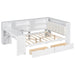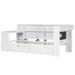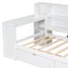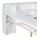 Full Size Platform Bed With Upholstered Headboard, Storage Shelves, Drawers, Charging Station, LED Lighting, Built In Desk - Beige / White