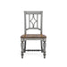 Add cozy charm to mealtimes with the Plymouth dining chair, designed to complement our Plymouth dining tables with a coordinating cottage look. Featuring an appealing open back design with a diamond-shaped detail, intricately carved trestles and turned legs, this chair provides a vintage look that’s full of character. With its weathered graywash finish and contrasting medium brown seat, this chair can be easily mixed and matched with other Plymouth chairs in the collection for a cohesive look.
