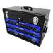 20'' Portable 3 Drawer Steel Toolbox, 4 Layers Of Tools With Metal Latches, With Top Storage Tray And Carrying Handle, Multi Function Tool Storage For Garage, Home, Or Workbench - Black / Blue