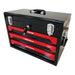 20'' Portable 3 Drawer Steel Toolbox, 4 Layers Of Tools With Metal Latches, With Top Storage Tray And Carrying Handle, Multi Function Tool Storage For Garage, Home, Or Workbench - Black / Red