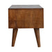• Chestnut Prism Sliding Media Unit - This media unit has been constructed from 100% solid mango wood in a chestnut finish and features 1 open slot and 1 hand-carved sliding door which features a raised prism design. It also features 4 Nordic-style legs which complement the body nicely and give the entire piece a contemporary look. The perfect addition to the home.