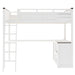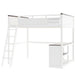 Queen Size Loft Bed With Desk, Open Shelf, Storage Box And USB Charging Station - White