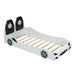 Race Car Shaped Twin Platform Bed With LED Lighting And Upholstered Backrest Construction - White