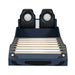 Race Car Shaped Twin Platform Bed With LED Lighting And Upholstered Backrest Construction - Blue