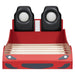 Race Car Shaped Twin Platform Bed With LED Lighting And Upholstered Backrest Construction - Red