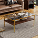 Rectangle Coffee Table With Tempered Glass Top, Modern Table For Living Room - Gray / Gold