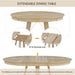 - Adjustable Oval Table: Round table with 16" leaf can be extended to an oval shape, offering versatility in length.