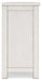Details Made with rubberwood solids, ash veneer and MDF substrates, Antiqued white finish with wood grain texture, 4 cabinets; lower cabinets each have single adjustable shelf, 2 smooth-gliding drawers, Satin nickel-tone hardware, Top surface and cabinet doors with planked effect