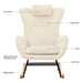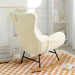 Rocking Chair Nursery, Teddy Upholstered Rocker Glider Chair With High Backrest, Adjustable Headrest & Pocket, Comfy Glider Chair For Nursery, Bedroom, Living Room, Offices, Rubber Wood - Beige