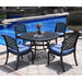 Round 4 Person 51.97" Long Powder Coated Aluminum Dining Set With Navy Blue Cushions - Antique Navy Blue